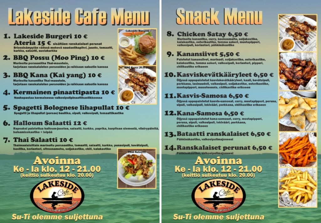 Meille autoilet viehättävien omenapuutarhojen ohi ja matkalla näet myös historiallisen Vohloisten kartanon. Saapuessasi veneellä, voit parkkeerata laituriimme. Kahvilasta löytyy pientä suolasta ja makea. Baari toimii normaalisesti. Huomioimme erikoisruokavaliot. Sammakkobaarissa on A-oikeudet. Ilmoitathan yli 10 hengen ryhmien tulosta etukäteen, näin varmistamme, että tarjottava riittää. Meille mahtuu jopa 20 henkilön ryhmä ruokailemaan, ryhmävaraukset tulee tehdä viimeistään viikkoa ennen.